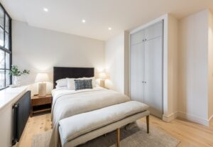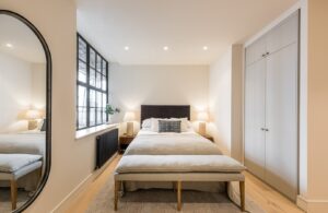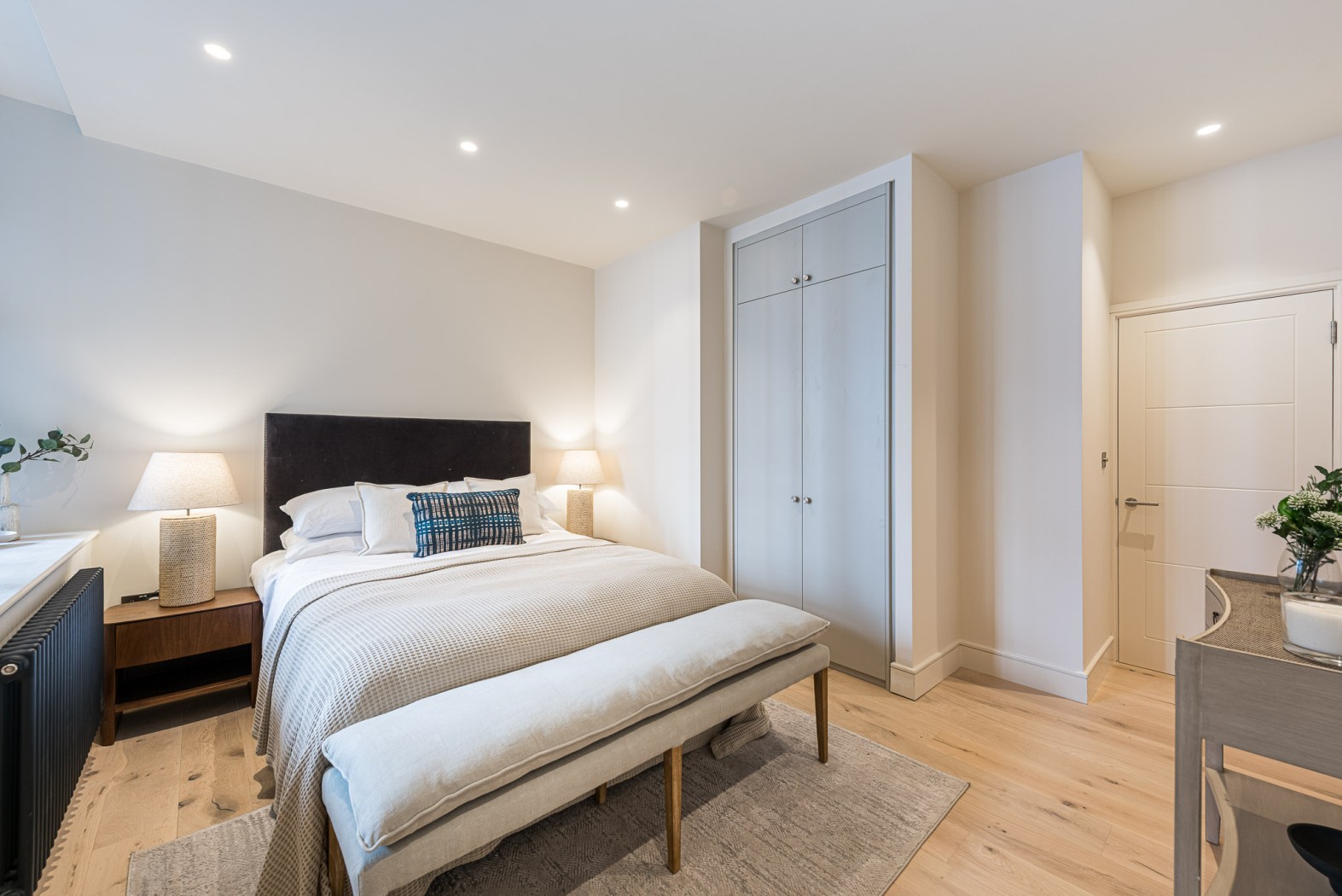 The principal bedroom is particularly striking, offering a luxurious sense of scale rarely found in comparable apartments. A second substantial bedroom provides equally comfortable accommodation, ideal for guests, family, or a beautifully appointed home office.