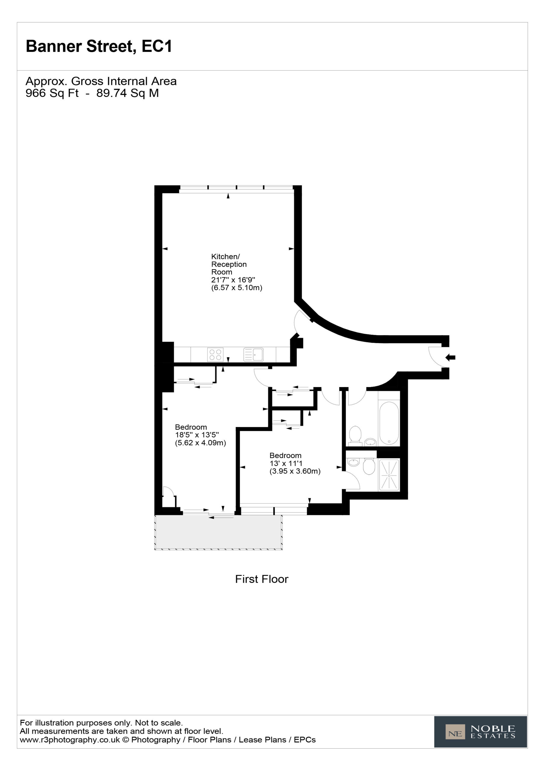 Extending to an impressive 966 sq ft, this 2-bedroom apartment offers an expansive, beautifully proportioned living space designed for refined city living.