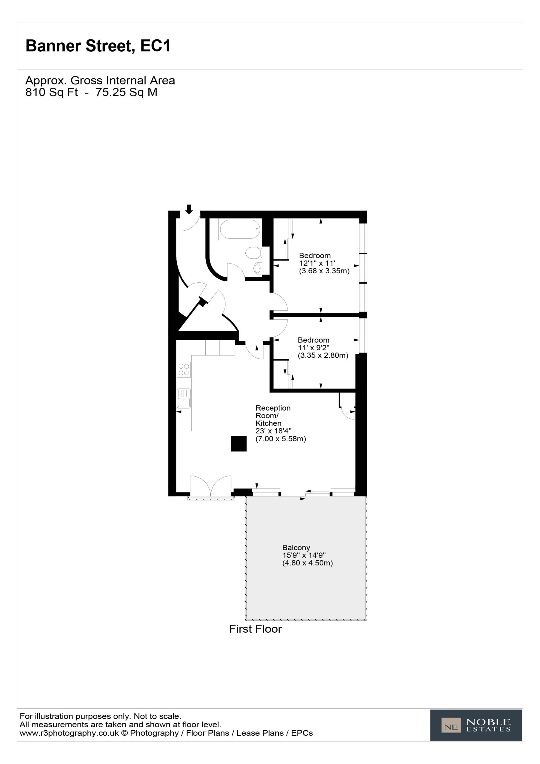 A beautifully proportioned apartment that extends to approximately 810 sq ft, with a substantial roof garden.