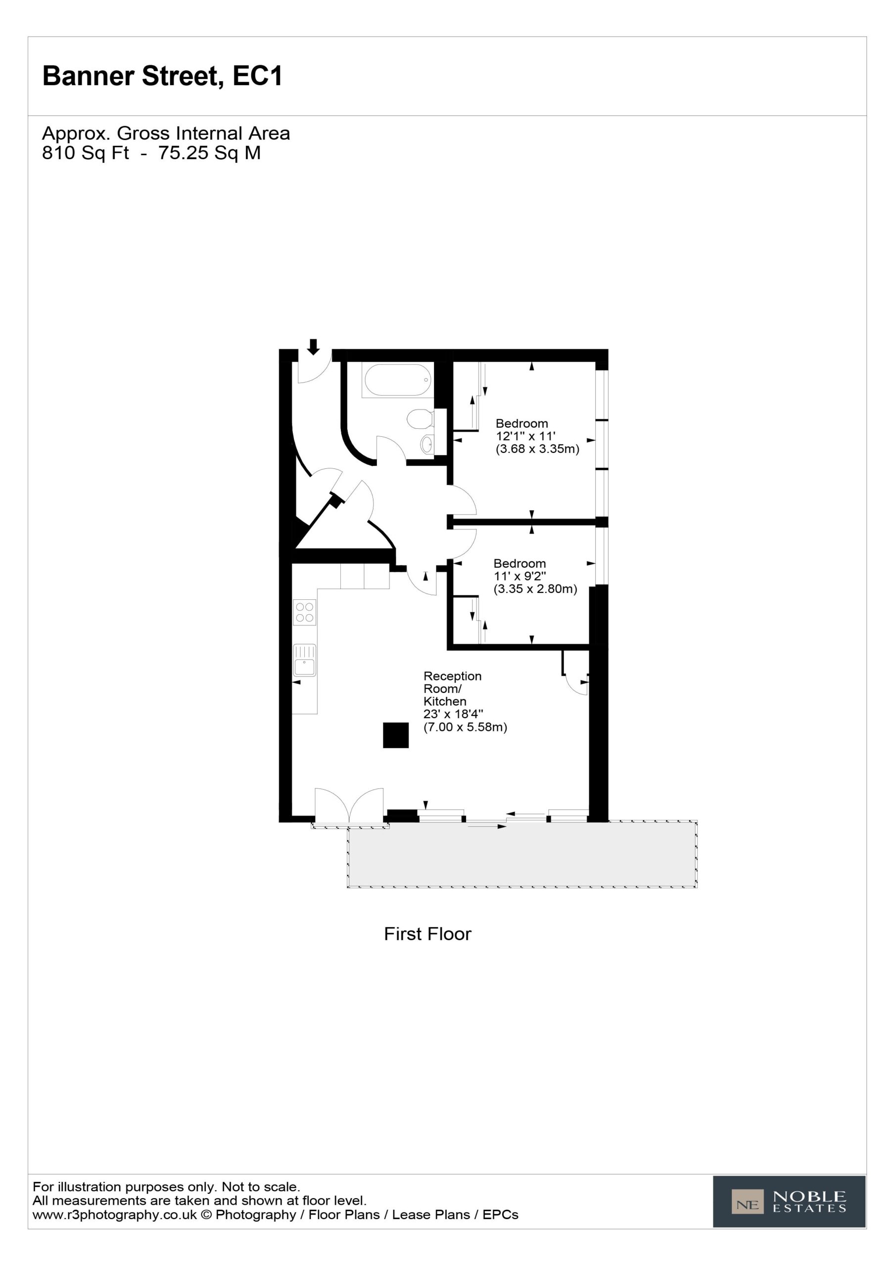 A beautifully proportioned apartment that extends to approximately 810 sq ft, with a substantial roof garden.