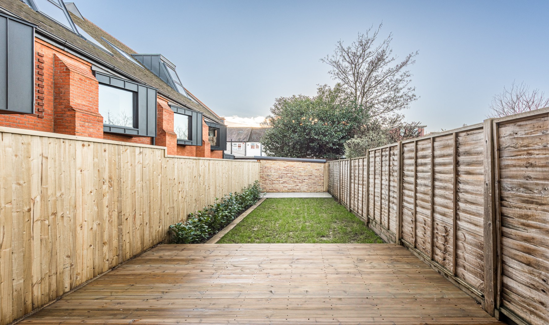 The private rear garden has been thoughtfully landscaped, with tiled space ideal for outdoor dining and low-maintenance artificial lawn beyond - creating an excellent setting for entertaining during the warmer months.
