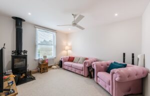 This exceptional home has been thoughtfully renovated by the current owners to a high standard throughout, offering a perfect blend of contemporary styling and practical living space and complete with a wood burning stove. The first floor comprises a bright and inviting reception room, complete with large windows allowing for an abundance of natural light, alongside a separate modern kitchen fitted with sleek cabinetry and integrated appliances. A further room on this level provides excellent flexibility as a third bedroom, home office or study.