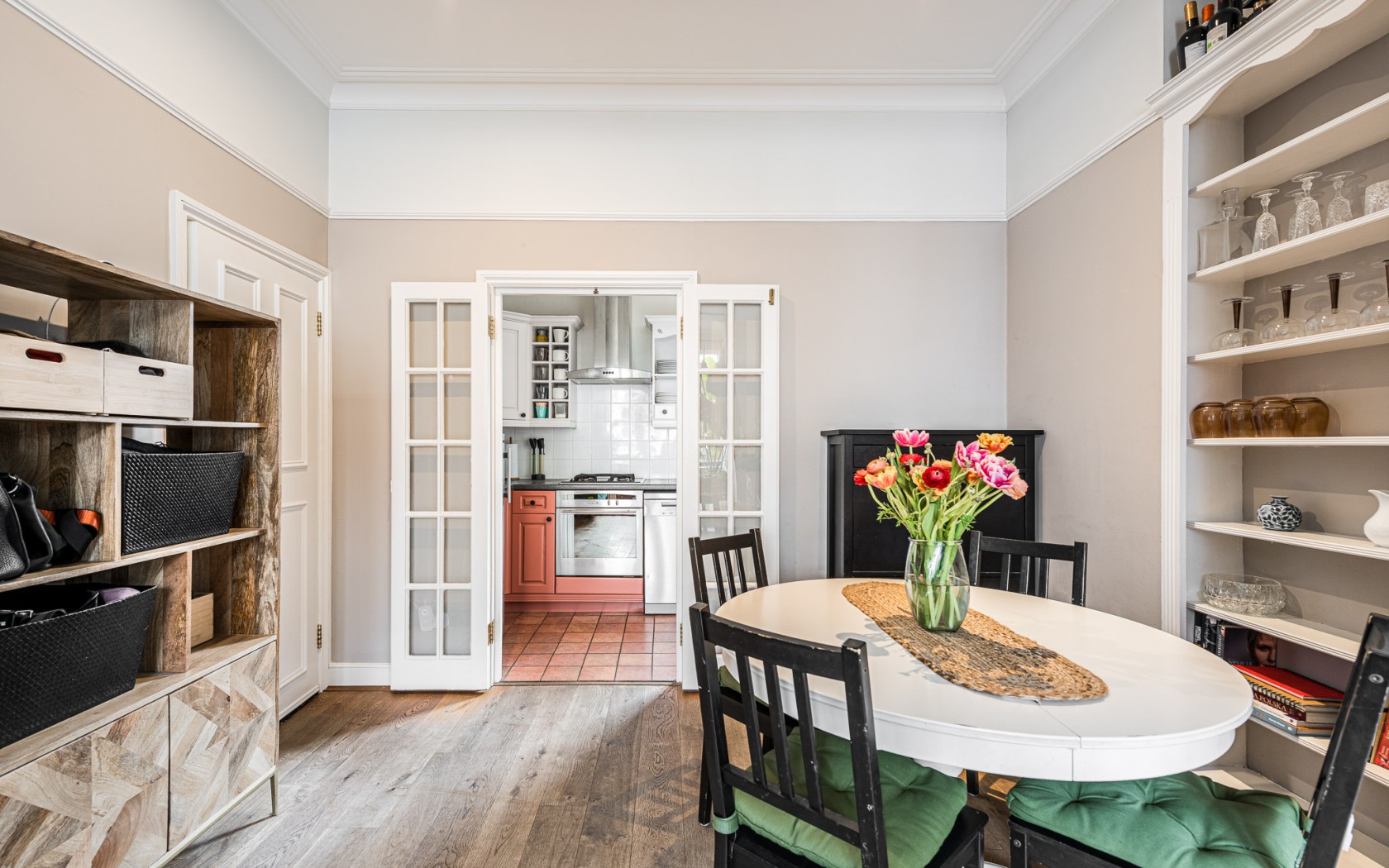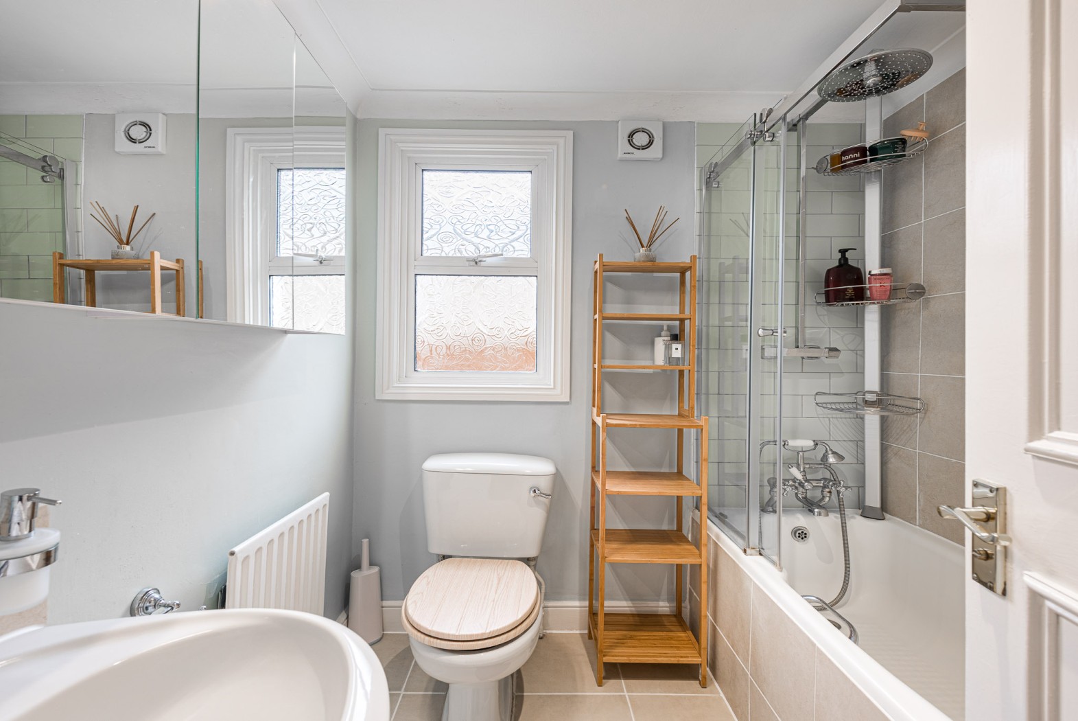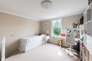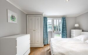 Also on the ground floor is a well-proportioned double bedroom, giving direct access to the garden, along with a contemporary family bathroom finished to a high standard.