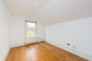 The top floor features a wonderful principal suite complete with an en suite shower room, as well as a further bedroom with built-in wardrobes. This floor is completed by an additional family bathroom with both bath and shower. Extra storage can be found in the eaves and in the cellar, which runs beneath the entrance hall.
